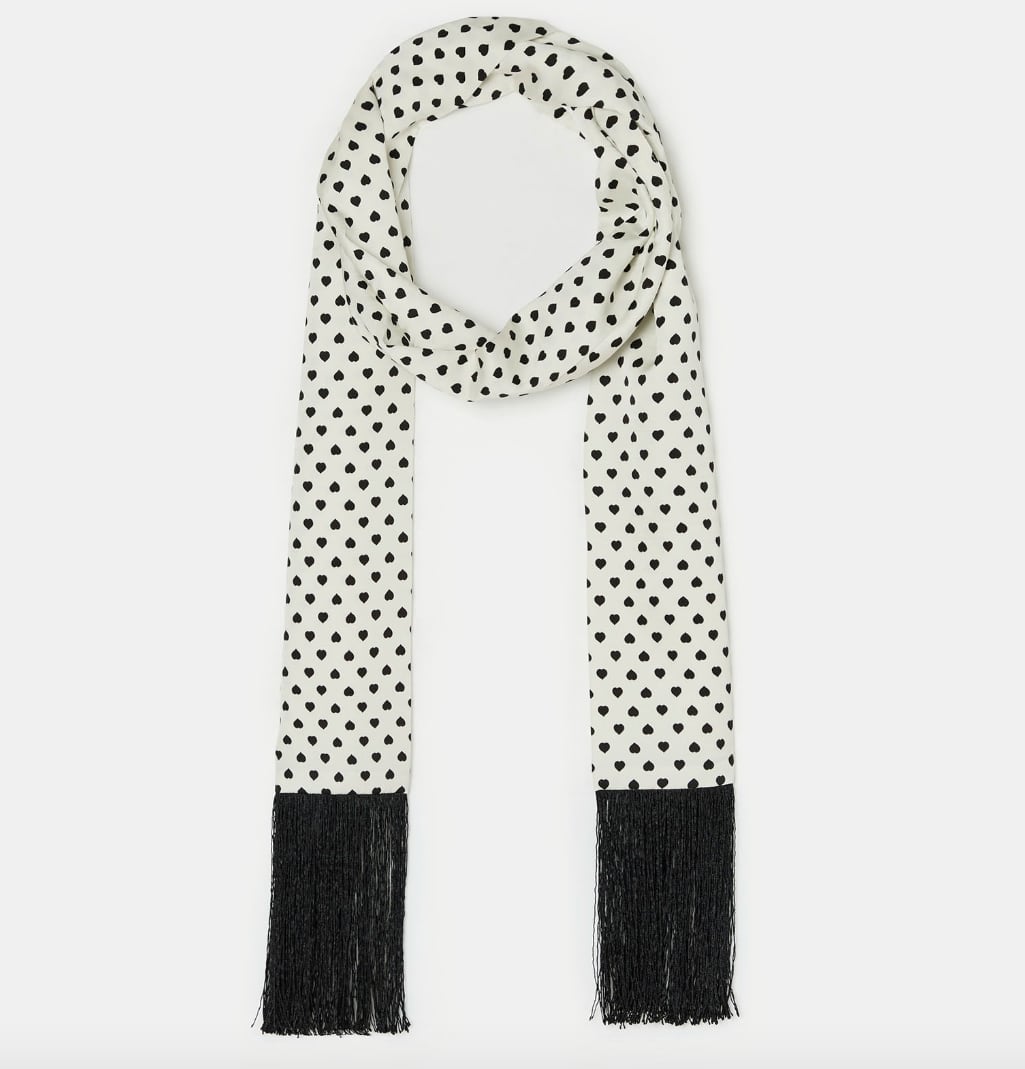 小さなハートがかわいいフリンジのついたアクセサリーストール。
